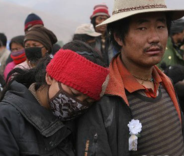 • 10點(diǎn)左右,天空中短暫飄起了點(diǎn)點(diǎn)雪花。儀式即將結(jié)束時(shí),玉樹的各大寺院響起深沉的頌經(jīng)聲,為玉樹地震遇難者祈福…