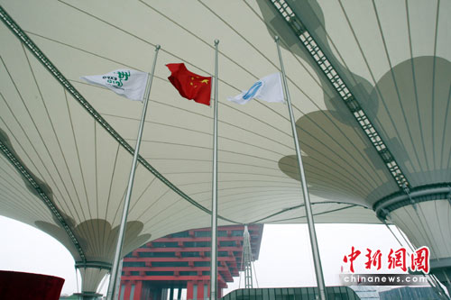 上海世博園區(qū)降半旗哀悼玉樹(shù)地震遇難者