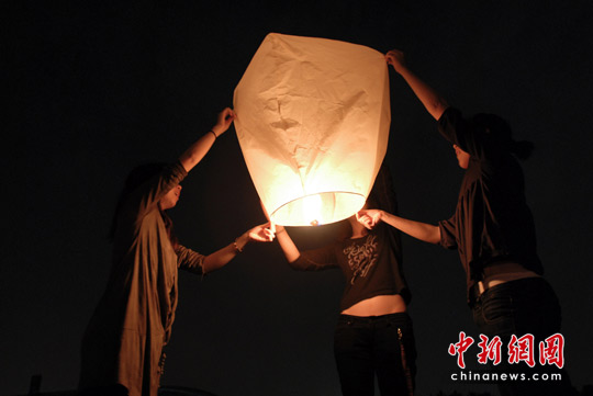 大學(xué)生點(diǎn)燃孔明燈為玉樹(shù)災(zāi)區(qū)人民祈福