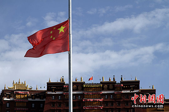 圖:布達(dá)拉宮為地震逝者降半旗