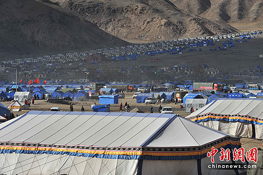 圖:玉樹(shù)出現(xiàn)救災(zāi)帳篷新城