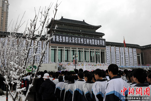 圖:青海各界民眾悼念玉樹(shù)地震遇難者
