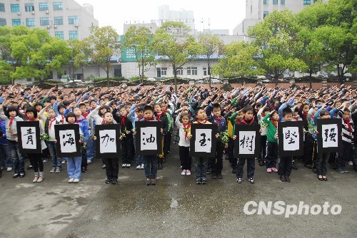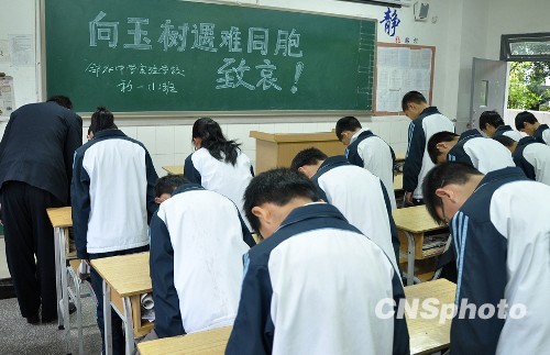 圖:浙江溫嶺學(xué)生哀悼玉樹(shù)地震遇難同胞