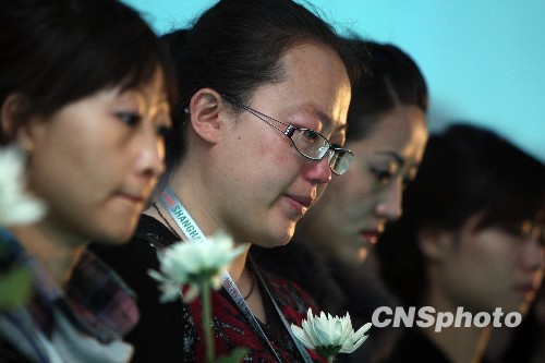 世博青海館工作人員哀悼玉樹(shù)地震遇難者