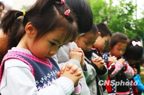 圖:河北小學(xué)生為玉樹(shù)地震遇難同胞祈禱
