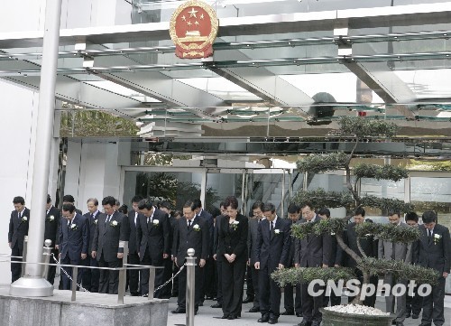 中國(guó)駐日本大使館為玉樹(shù)地震降半旗默哀