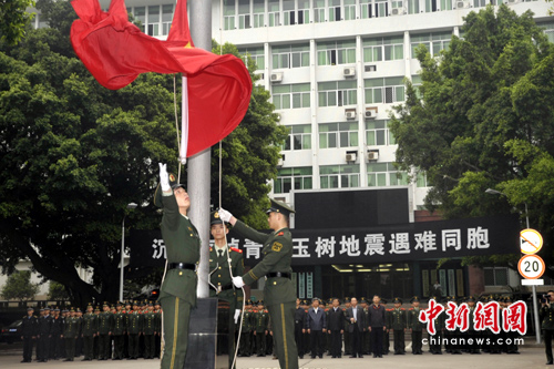 圖:國(guó)務(wù)院新聞辦降半旗為玉樹(shù)遇難者志哀