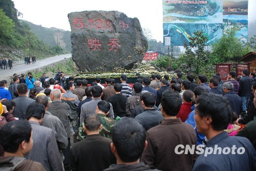 映秀民眾沉痛悼念玉樹(shù)地震遇難同胞