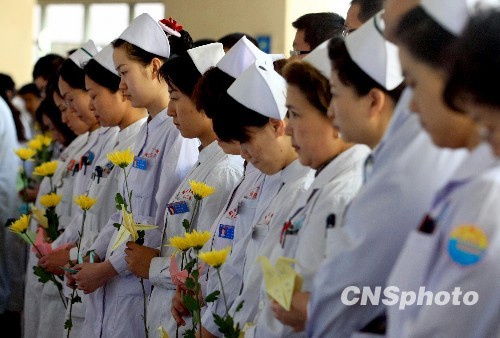 新疆醫(yī)護(hù)工作者哀悼玉樹(shù)地震遇難同胞