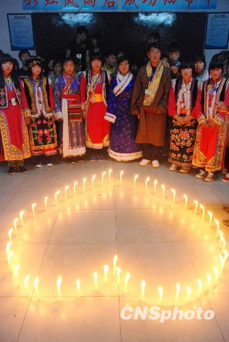 揚(yáng)州藏族大學(xué)生為玉樹(shù)地震遇難同胞默哀祈福
