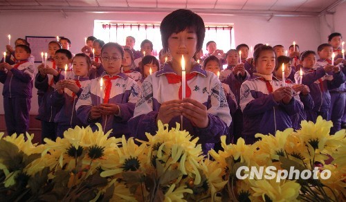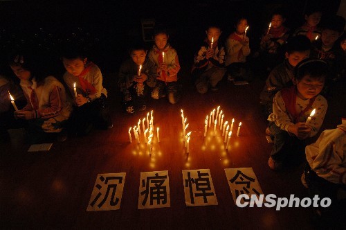 重慶小學(xué)生點(diǎn)燃蠟燭為玉樹(shù)遇難者默哀