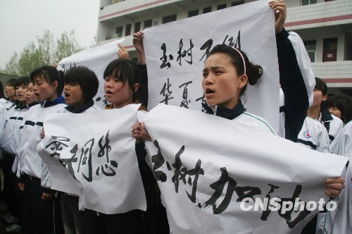 圖:河南漯河中學(xué)生哀悼玉樹(shù)地震遇難者