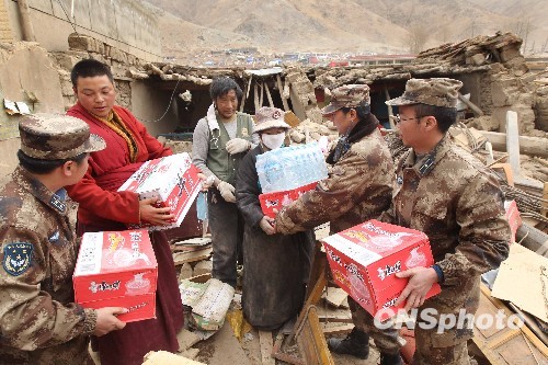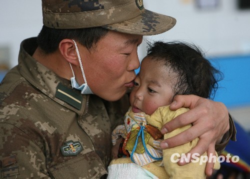 青海玉樹(shù)地震:解放軍照看受傷嬰兒