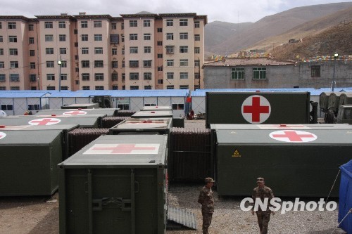 圖:濟(jì)南軍區(qū)野戰(zhàn)方艙醫(yī)院奮戰(zhàn)玉樹(shù)地震災(zāi)區(qū)