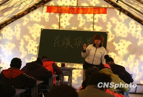 圖:玉樹(shù)災(zāi)區(qū)高考帳篷學(xué)校復(fù)課