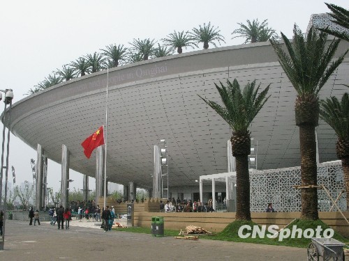 圖:世博園沙特館為青海玉樹(shù)地震降半旗致哀