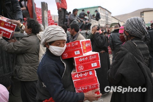 圖:玉樹(shù)縣為居民發(fā)放免費(fèi)食品