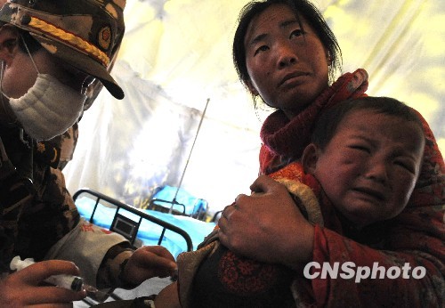 青海玉樹(shù)地震:軍醫(yī)忙于為患病兒童打針