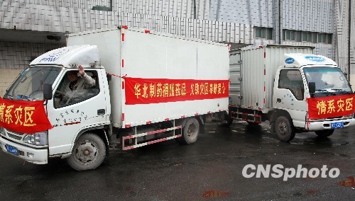 圖:華藥價(jià)值百萬(wàn)元藥品雨中急赴玉樹(shù)災(zāi)區(qū)