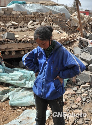 全國(guó)哀悼日:幸存的玉樹(shù)姑娘在自家廢墟上致哀
