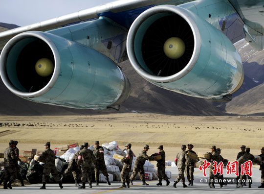圖:中國空軍每天多架次運(yùn)輸救災(zāi)物資