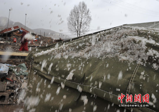 圖:青海玉樹地震災(zāi)區(qū)突降冰雹