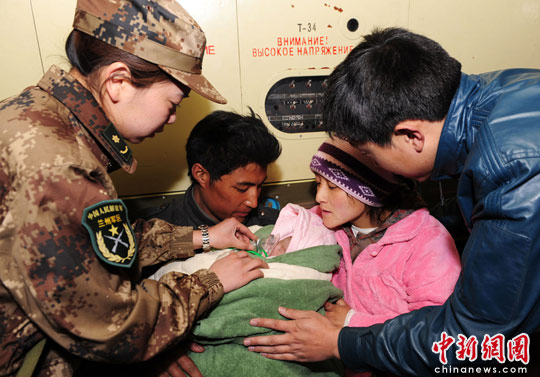 玉樹災(zāi)區(qū)醫(yī)療隊搶運(yùn)受傷嬰兒