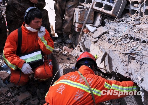 玉樹震區(qū)救援隊爭分奪秒搶救生命