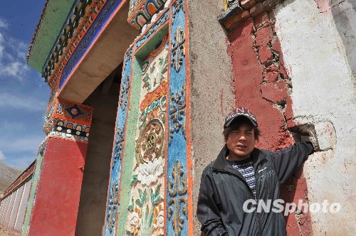 圖:玉樹震中點日查榮寺寺門兩邊出現(xiàn)裂縫