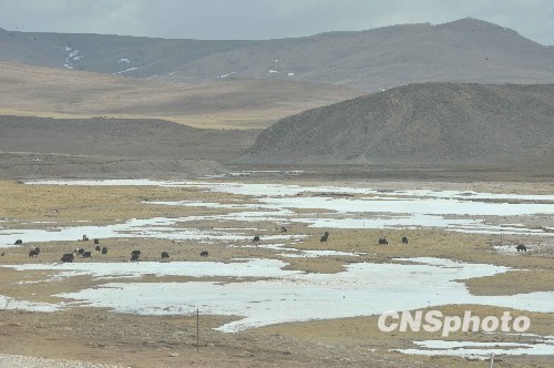 圖:玉樹震中點草原處處現(xiàn)牛羊