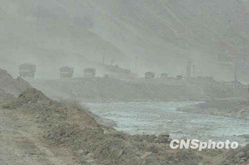 玉樹災(zāi)區(qū)抗震救援隊在風(fēng)沙中積極救災(zāi)