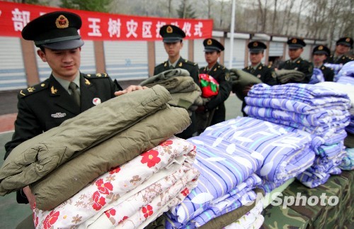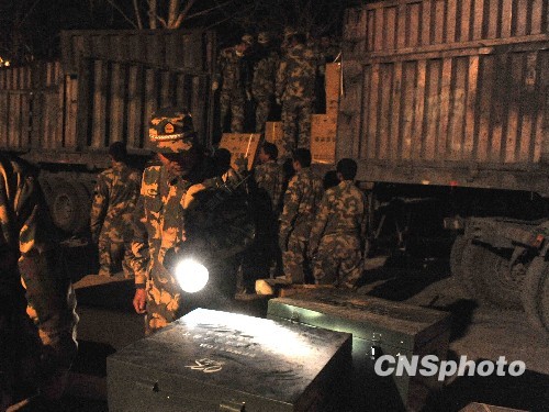 圖:武警青海省總隊星夜向玉樹運(yùn)輸大批物資