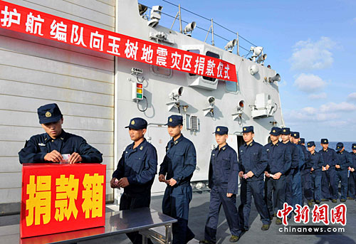 中國海軍第五批護(hù)航編隊官兵向玉樹地震災(zāi)區(qū)捐款
