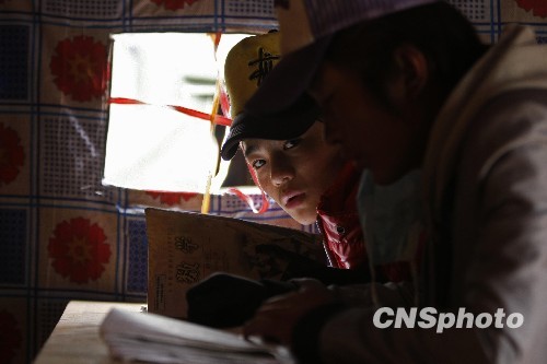 青海玉樹地震:帳篷教室內(nèi)上課的孩子