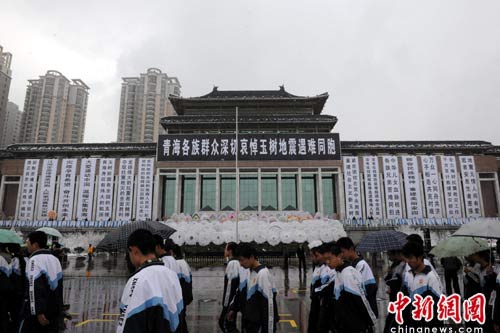 圖:西寧各界民眾冒雪悼念玉樹地震遇難同胞