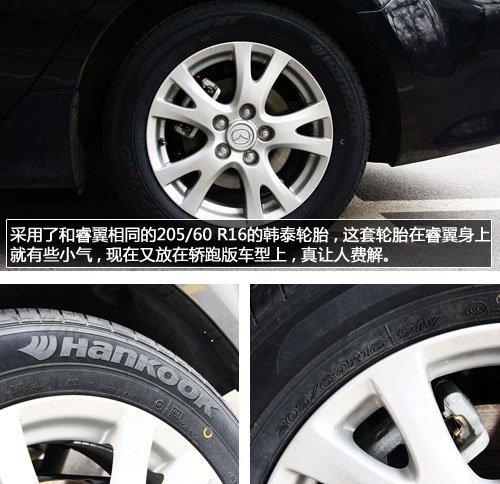 睿翼轎跑車(chē)的尾部也與普通版不同,順滑圓潤(rùn)的C柱設(shè)計(jì)比普通版車(chē)型看上去更加動(dòng)感,不過(guò)這樣也會(huì)損失一些后排乘客的頭部空間,后備箱采用了掀背式設(shè)計(jì),連同后車(chē)窗一起開(kāi)啟,開(kāi)口很大,讓消費(fèi)者可以更加從容的取放大件物品,而后備箱開(kāi)啟按鈕的設(shè)計(jì)則與睿翼沒(méi)有區(qū)別。最大的遺憾就是我們?cè)谶@款車(chē)型上看到的205/60 R16的韓泰輪胎,在睿翼身上就顯得有些小,搭配到睿翼轎跑上還沒(méi)有任何改進(jìn)就有點(diǎn)說(shuō)不過(guò)去了,這樣節(jié)約成本的方式實(shí)在讓人不解。