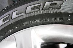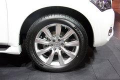 來到車身側(cè)面我們更加會(huì)覺得QX56的龐大,整體造型圓潤,沒有多余的線條作為修飾,但是反而會(huì)讓人感到車身很厚實(shí)。無鑰匙進(jìn)入也毫無懸念的裝配在了QX56身上,兩側(cè)翼子板上的散熱孔并非形同虛設(shè),而是告訴我們它裝載了一臺(tái)V8 5.6升汽油發(fā)動(dòng)機(jī)。其次英菲尼迪慣用的大尺寸輪轂同樣被裝到了這款新車上,22寸9幅造型的鋁合金輪轂使我不得不說很有氣勢(shì),與之搭配的是普利司通275\50 R22輪胎,抓地力應(yīng)該相當(dāng)不錯(cuò)。