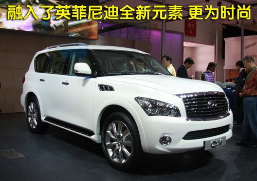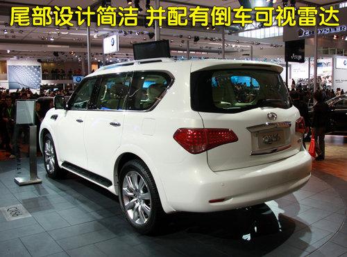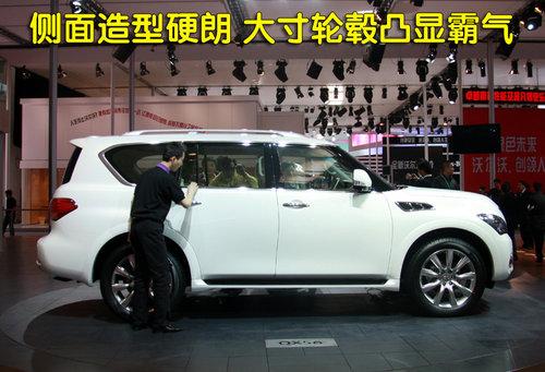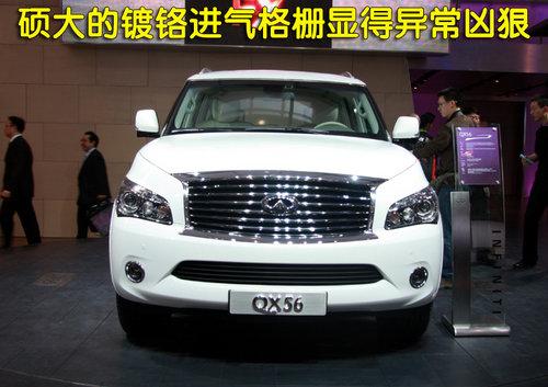 近年來SUV車型持續(xù)火爆,各廠商陸續(xù)推出新的車型以增加市場(chǎng)競(jìng)爭(zhēng)力。同時(shí)性能強(qiáng)悍,寬大舒適的大型SUV,也得到了一些具有獨(dú)特品位喜歡運(yùn)動(dòng)且資金富裕消費(fèi)者的最愛,因此大型豪華SUV市場(chǎng)也受到了不少消費(fèi)者的關(guān)注。英菲尼迪是日系高端品牌中最具有藝術(shù)氣息的,今年在北京車展上就展出了全新一代的QX56,QX56作為一款7座豪華SUV車型,一經(jīng)推出就立刻受到了的中國消費(fèi)者的關(guān)注。近日我們從英菲尼迪4S店銷售人員處獲悉到,全新的英菲尼迪QX56將于今年9月份到店,預(yù)計(jì)售價(jià)160萬元左右。銷售人員還表示,目前各4S店均已開始接受預(yù)定,訂金10萬,第一批車主將于10月份提到現(xiàn)車。下面就讓我們回顧一下,在2010北京車展上見到的英菲尼迪QX56。