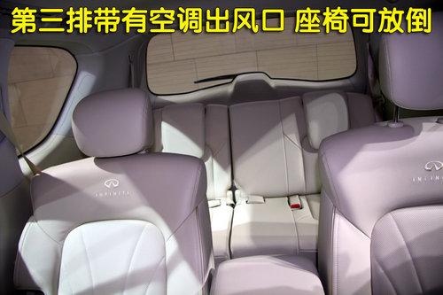接下來我們就要說到第三排座椅了,也許這里的使用次數(shù)并不會很多,但是英菲尼迪同樣為第三排乘客提供了空調(diào)出風口,大大提高了舒適度,如果有人故意將我擠到最后面的話,我想我還是可以接受的。如果當你需要更大的空間作為儲物用途時,第三排座椅可以進行4/6拆分放倒,這一點你要相信它的實力?傊绻阈枰恍﹤性,又想兼顧品質(zhì)與豪華舒適,這款英菲尼迪全新QX56應該會很貼合你的想法。
