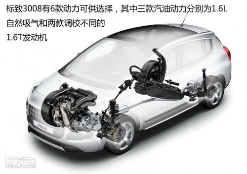 標致3008有6款動力可供選擇,包括三款柴油動力和三款汽油動力,首先來說與國內(nèi)消費者關(guān)系最密切的汽油發(fā)動機,包括一臺1.6升VTi發(fā)動機,最大功率118馬力,扭矩160Nm;另一臺1.6升THP渦輪增壓發(fā)動機最大功率148馬力,扭矩374Nm,另一臺高功率的1.6升THP渦輪增壓發(fā)動機最大功率154馬力,扭矩374Nm。