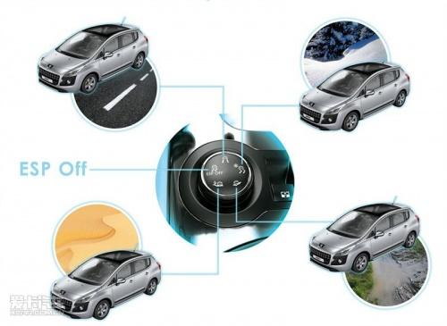 標致3008還有一個值得一提的功能就是抓地力控制系統(tǒng);其由一個先進的牽引力控制系統(tǒng)和特殊的泥/雪輪胎,通過自動調(diào)節(jié)前輪的牽引力輸出方式和功率來達到對應(yīng)的效率。標致的這套系統(tǒng)通過人工來進行切換,其一共有五個控制檔位:標準、雪地、越野(泥地、爛路、濕滑草地)、沙石地和關(guān)閉;通過調(diào)節(jié)不同的檔位來適應(yīng)不同的路面情況。