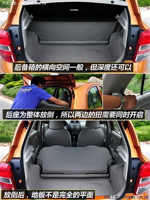瑪馳的后排座椅不能4/6分折放倒,這就意味著當你需要利用后備箱最大空間時只能容納兩人駕乘。座椅翻折時需要同時打開兩側的鎖止機構然進行操作,由于小車的寬度有限,因此獨立完成這樣的動作很輕松!看!最大空間下的狀態(tài)也挺不錯的嘛。