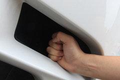 面積寬大的前保險(xiǎn)杠上四個(gè)前側(cè)探頭一字排開,下面的進(jìn)氣格柵采用蜂窩網(wǎng)狀,車型定位運(yùn)動(dòng)的身份暴露無遺。底邊兩側(cè)原本應(yīng)該是被霧燈雄霸的區(qū)域,M3把這部分處理為黑色進(jìn)氣口,前輪剎車片散熱勤懇服務(wù),一拳的高度可見它一定擁有很好的胃口。