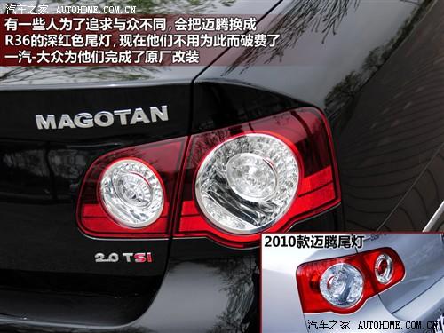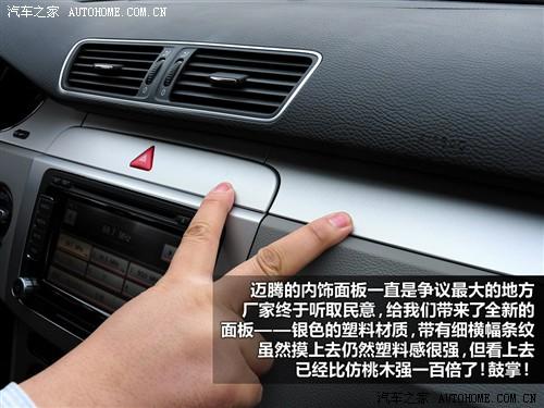 2011款邁騰的外觀和內(nèi)飾進行了的一些修改,主要是換裝新的和R36一樣的深紅色尾燈和新的內(nèi)飾面板,另外在高配車型上增加了后排乘客調(diào)節(jié)前排副駕駛座椅的功能,其他的變化都是細節(jié)上的,對整車實用性影響不大,不過也順便把座椅位置記憶減配了。