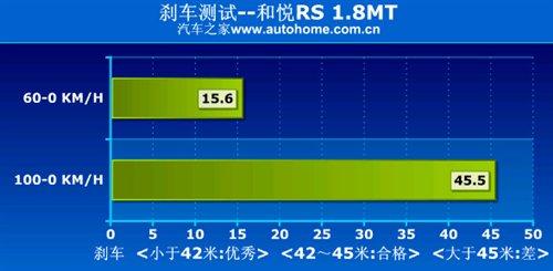 和悅RS全系車型只有一種動(dòng)力組合,來自東安動(dòng)力的4G93 1.8L發(fā)動(dòng)機(jī)搭配5檔手動(dòng)變速箱,這樣的組合技術(shù)上并不先進(jìn),但是實(shí)際測(cè)試時(shí)0-100km/h 11.8秒的加速成績還是比較令人滿意的。而配有四輪盤剎的剎車系統(tǒng)卻表現(xiàn)不佳,100-0km/h的平均剎車距離僅為45.5米,這樣的成績肯定不能令人滿意。