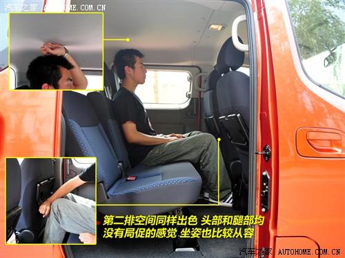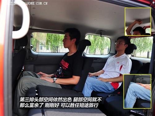 本車的體驗者身高為188cm,但坐在NV200的前兩排頭部仍然有一拳的余量,車身較高確實是廂式車的一大優(yōu)點。而且和之前介紹的兩款車型不同,NV200的第三排座椅可以乘坐一名成年男性,雖然也不寬裕但可以進行短途的乘坐。