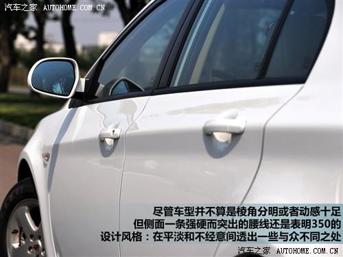 相比750的古板、550的前衛(wèi),350的外觀設(shè)計(jì)更接近我們中庸的審美觀,不管是車輛整體還是細(xì)節(jié)的設(shè)計(jì)都沒有令人難以接受的地方,外觀與榮威之前的兩款車型也鮮有相似的地方,仔細(xì)觀察的話,只有前臉的橫條鍍鉻格柵與550有一些相似之處,除此之外,350令人印象深刻的還有側(cè)面突出的腰線。