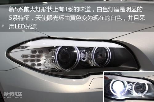 前大燈從外形上看有點(diǎn)類似于現(xiàn)款3系的設(shè)計(jì),但很明顯的5系風(fēng)格是擁有白色的燈眉設(shè)計(jì),據(jù)寶馬官方介紹,這樣的設(shè)計(jì)將使得前大燈給人一種注視前方的感覺,更加有神。而與上代5系相比非常明顯的變化是天使眼大燈由此前的黃色變?yōu)榘咨,更加時(shí)尚和富有科技感,并且天使眼的發(fā)光源采用了LED燈組設(shè)計(jì)。