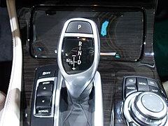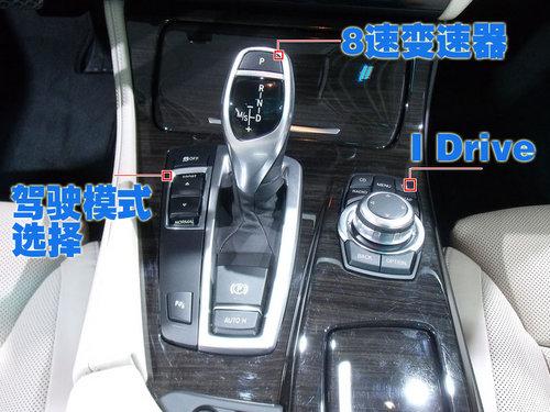 新款國產(chǎn)5系Li的變速器依然位于中央扶手部分,外形設(shè)計(jì)與新款7系轎車相同,為符合人體工程學(xué)的飛行手柄式,在其旁邊還有關(guān)閉穩(wěn)定程序、懸架舒適性調(diào)節(jié)、i-drive等相關(guān)控制按鈕,而在這支變速器桿所連接的部分是BMW全新的8前速手自一體變速器。