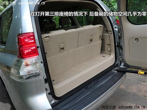 在打開第三排座椅的情況下,普拉多后備廂的儲(chǔ)物空間已經(jīng)近乎于零了,所以滿載7人之后,應(yīng)該趕快把第三排座椅收回去,不會(huì)?請看上圖。收起第三排座椅同樣是兩步,先摳起座椅旁邊的機(jī)關(guān),椅墊就可以自動(dòng)收回了,然后再摳起椅背上的開關(guān),放倒椅背就可以恢復(fù)如初了。